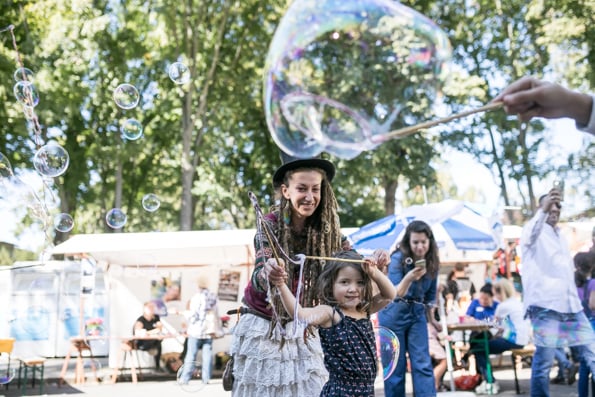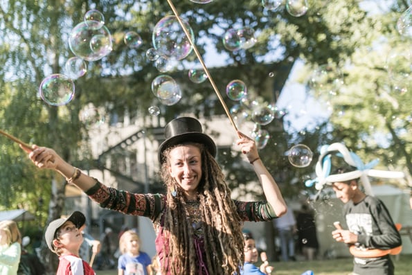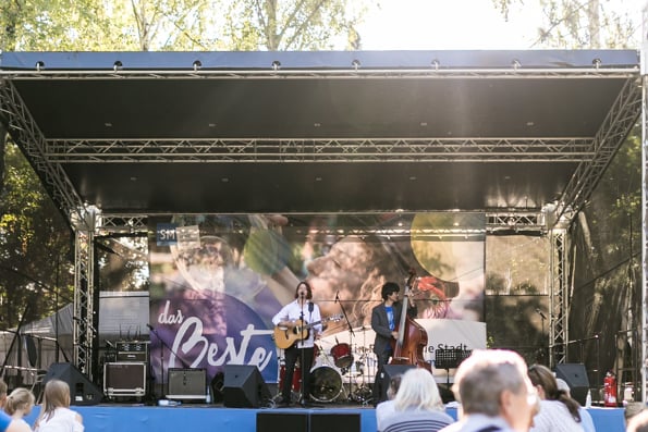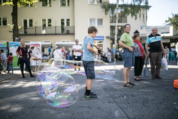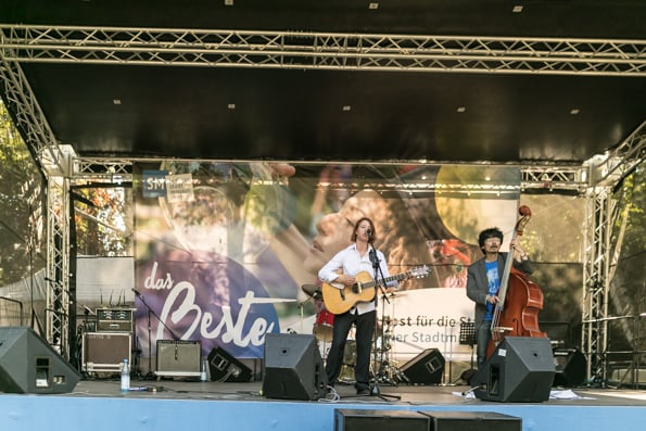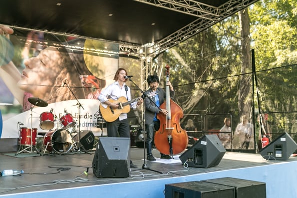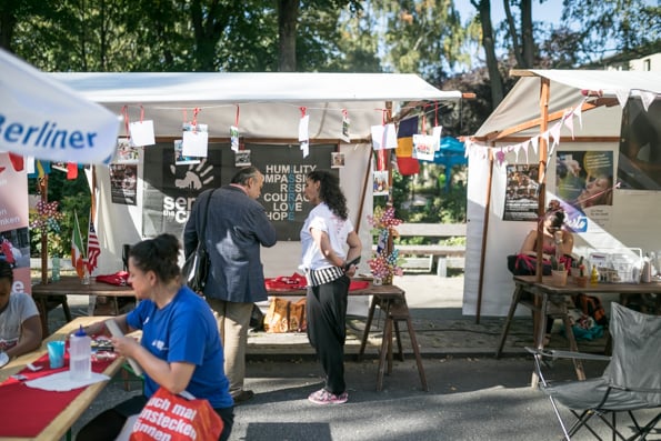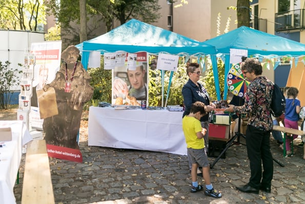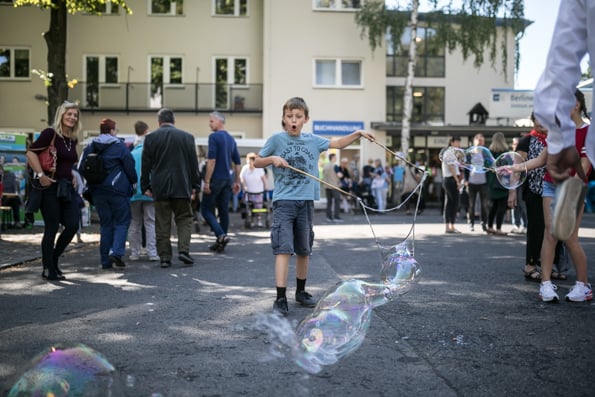 Die Sonne strahlte und die Besucher taten es ihr gleich. Um die 3.000 Menschen besuchten das Stadtmissionsfest am 9. September. Nach dem Startgottesdienst um 11 Uhr konnte man sich den ganzen Tag auf dem Gelände der Stadtmission in der Nähe des Berliner Hauptbahnhofs aufhalten, trödeln, Bogen schießen, eine Kirche aus Bausteinen bauen, Preise gewinnen, Musik hören, Artisten sehen usw.